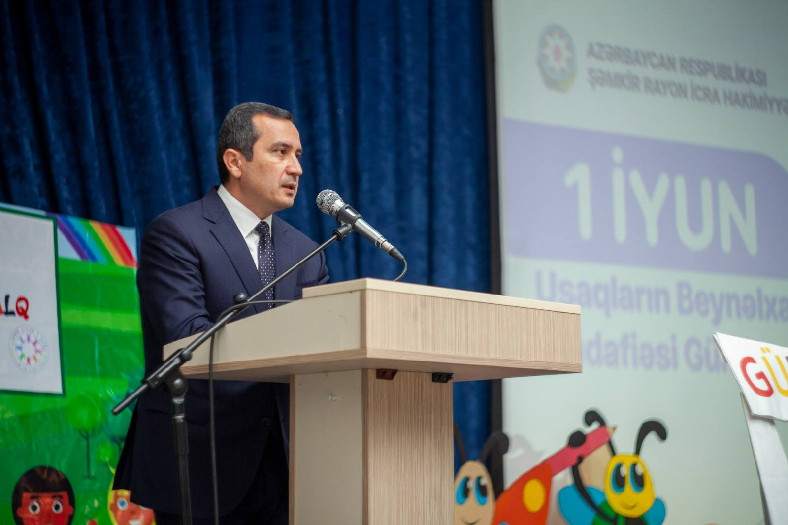 Şəmkir Rayon İcra Hakimiyyətinin başçısı Rəşad Tağıyev çıxış edərək Uşaqların Beynəlxalq Müdafiəsi Gününün yaranması tarixindən, tədbirin əhəmiyyətindən bəhs edib, Prezident cənab İlham Əliyevin rəhbərliyi ilə ölkəmizdə uşaqlara göstərilən hərtərəfli diqqət və qayğıdan danışıb.